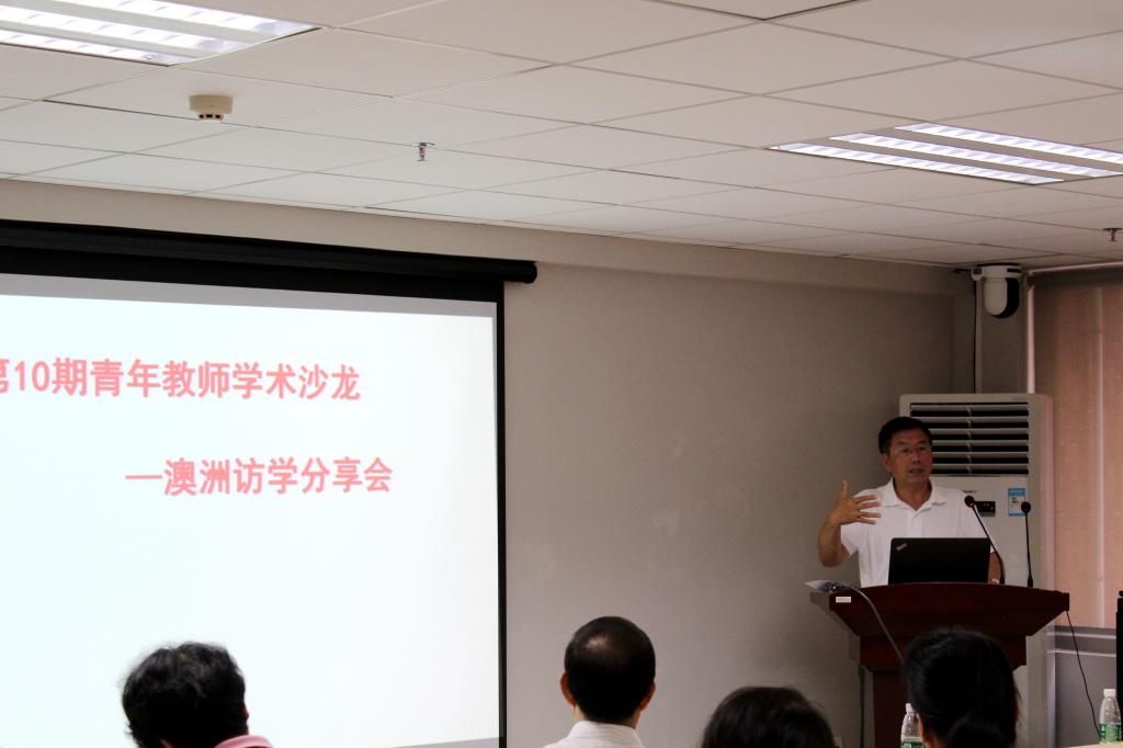 2017年9月19日下午,以“2017年赴澳教师ERP培训学习分享”为主题的第十期青年教师学术沙龙活动在行政楼502举行。学院支戈壁副院长、郭银华副院长,学院国内访问学者、千百十工程校级培养对象、相关职能部门负责人及各单位教师代表共50余人参加了此次活动。