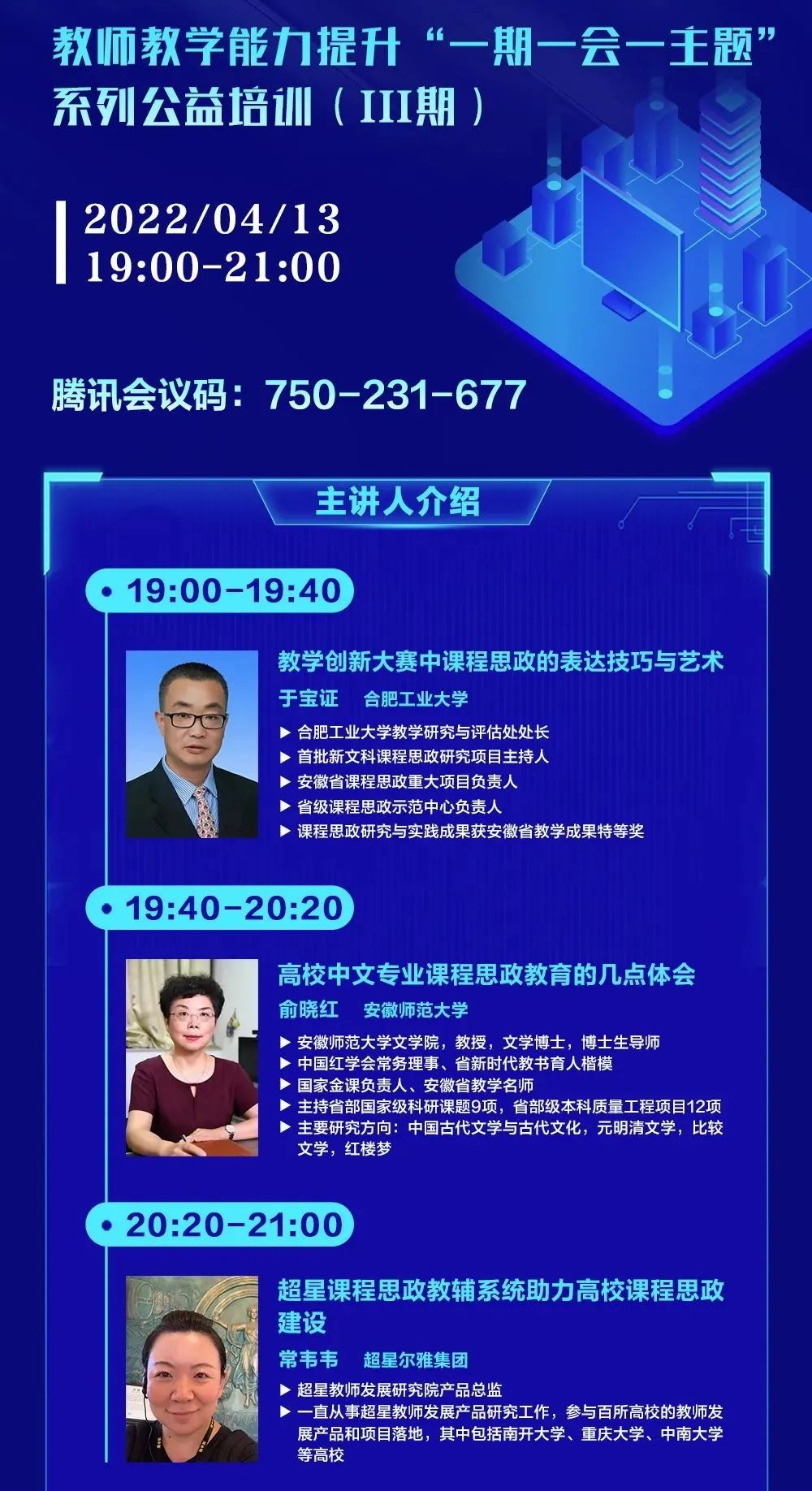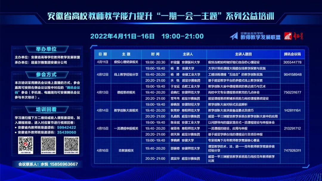 高校教师发展联盟兹定于2022年4月11日至16日联合超星尔雅集团安徽分公司开展“ 一期一会一主题系列公益培训”。