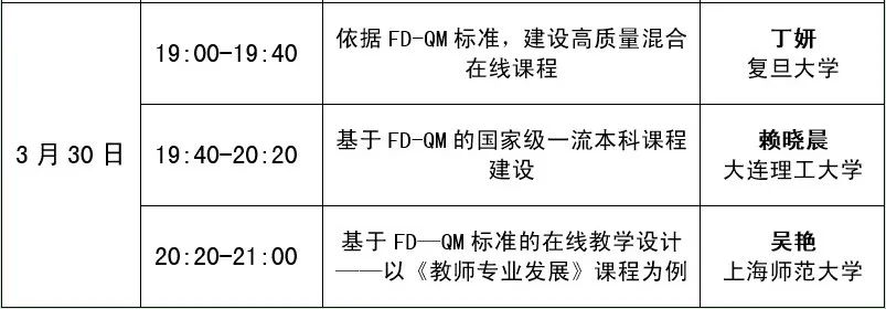 完成此次直播培训的学员可申请参加后期“FD-QM高等教育混合在线课程质量标准线上工作坊”(付费),工作坊具体安排请待后续通知。