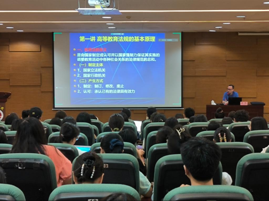在第一讲《高等教育法规的基本原理》里,郭凯教授对高等教育法规概括进行讲解,包含教育法的含义、渊源和效力,以及教育法治的价值和进展;第二讲《高等学校的法律地位》是对高等学校的法律地位进行阐述,其中《教育法》和《学位条例》等教育法律法规都属于行政法规;第三讲《高校教师的权利与义务的法律分析》则是讲解到高校教师的权利与义务,教师资格制度的含义与意义,让新教师们深刻明白自己的本职。
