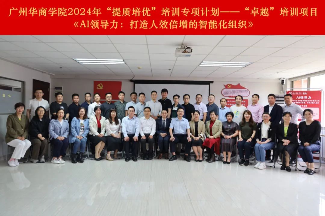 为提升我校管理层的领导能力和管理水平,帮助干部熟练地运用 AI 技术,将 AI 这一新质生产力要素运用到工作当中,提升个人工作效率和组织效能,我校于2024年4月11日至12日在行政楼502会议室举办了主题为《AI领导力:打造人效倍增的智能化组织》的“卓越”培训项目,此为广州华商学院2024年“提质培优”专项培训计划的重要组成部分。