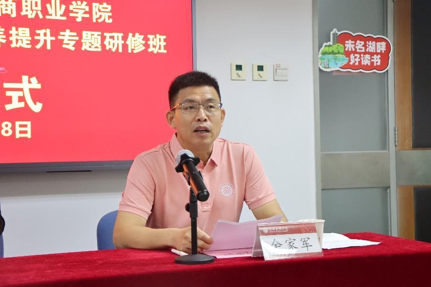 广州华商职业学院校长余家军教授代表广州华商学院和广州华商职业学院为本次培训班骨干教师作动员讲话。余家军校长强调,教师是立教之本、兴教之源,建设一支高素质的教师队伍是办好教育的关键。他希望各位老师通过本次研修班的学习,能够进一步更新教育理念,掌握先进的教学方法,提升教学创新能力,为培养德智体美劳全面发展的社会主义建设者和接班人贡献力量。