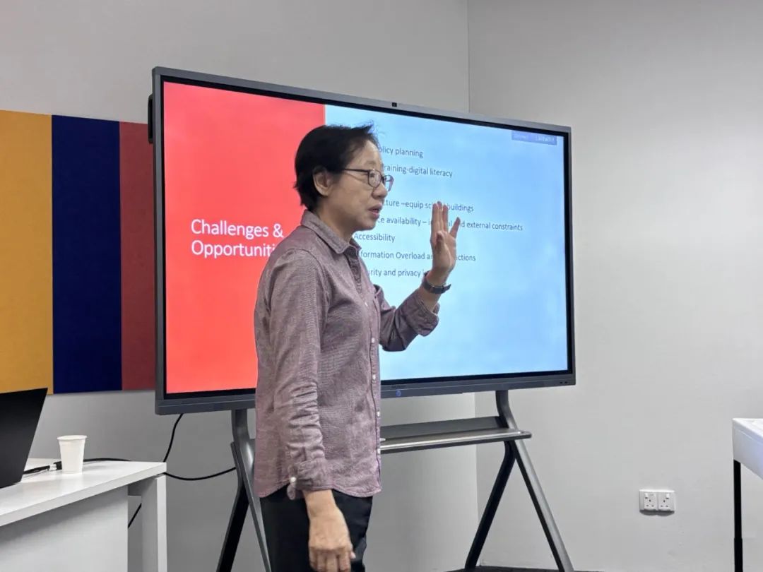 Ms. Ho Im Neo详尽讲解新加坡高等教育的独特之处,涵盖教育技术、公立教育体系、学校管理架构等方面,教师团就产教融合所面临的挑战与机遇展开深入研讨。