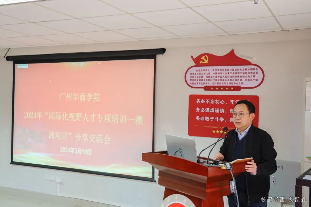 3月19日,我校召开了主题为“聚焦合格评估,推进内涵建设,提高人才水平”的广州华商学院2024年“国际化视野人才专项培训--澳洲项目”分享交流会,学校领导、全体参训骨干教师、各单位参与或负责合格评估工作的教职工代表近50人出席会议。人事处副处长杨俏文主持本次分享交流会。