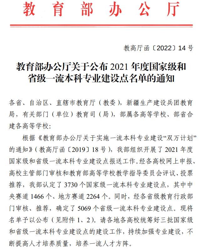 截至目前,我校共有1个专业入选国家级一流本科专业建设点、6个专业入选省级一流本科专业建设点,获批总数处于我省同类高校领先水平,这充分体现了学校长期以来注重专业内涵建设,提高人才培养质量的新成效。