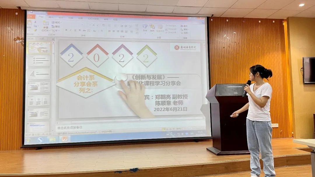 为引领教师了解数智化课程情况、深入探讨数智化课程的有效教学模式,2022 年6月21日,广州华商学院会计学院在厚德楼B407室顺利举办数智化课程分享交流会。本次分享会由会计学院会计系主任崔莉教授主持,由郑朝亮副教授和陈顺意老师分别进行会计智能化课程分享,会计系部分老师参与了此次分享会。