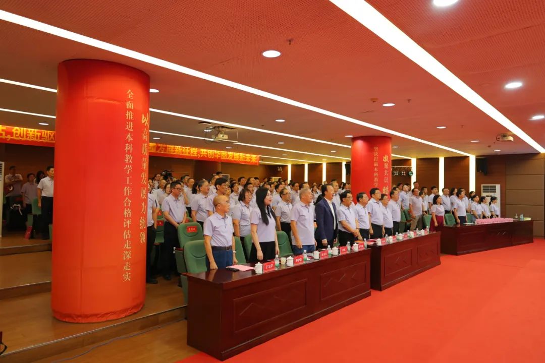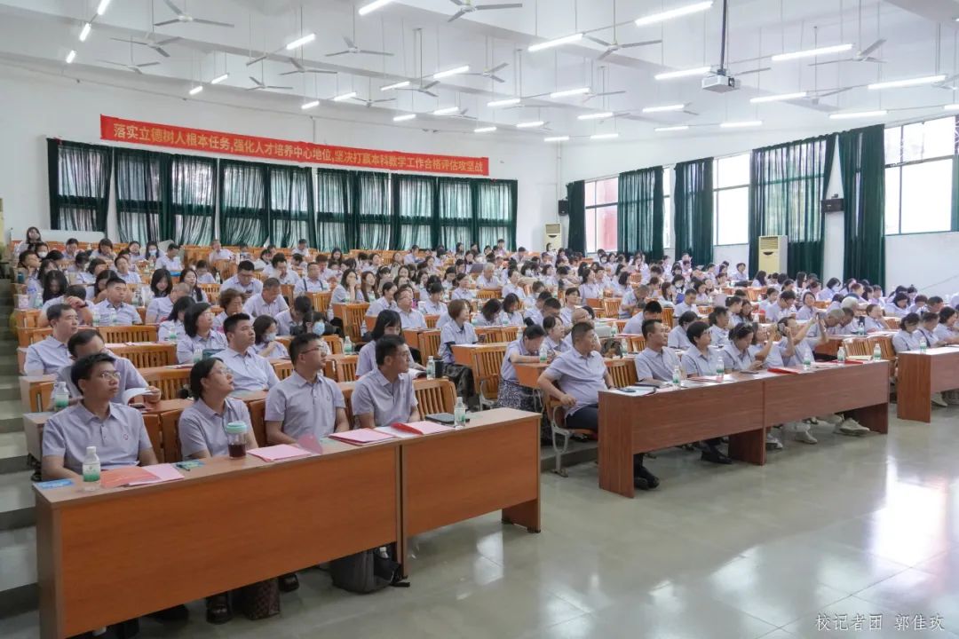 为进一步细化合格评估的标准和要求,有序推进我校本科教学工作合格评估,落实大会上,廖榕就董事长与全体校领导、党委书记陈玉欢与各二级学院及职能部门负责人分别签署本科教学工作合格评估责任书。全体教职员工表示将以满腔的热情和高度的责任心投身到迎评促建工作中,以最佳状态、最优成绩打赢本科教学工作合格评估攻坚战。