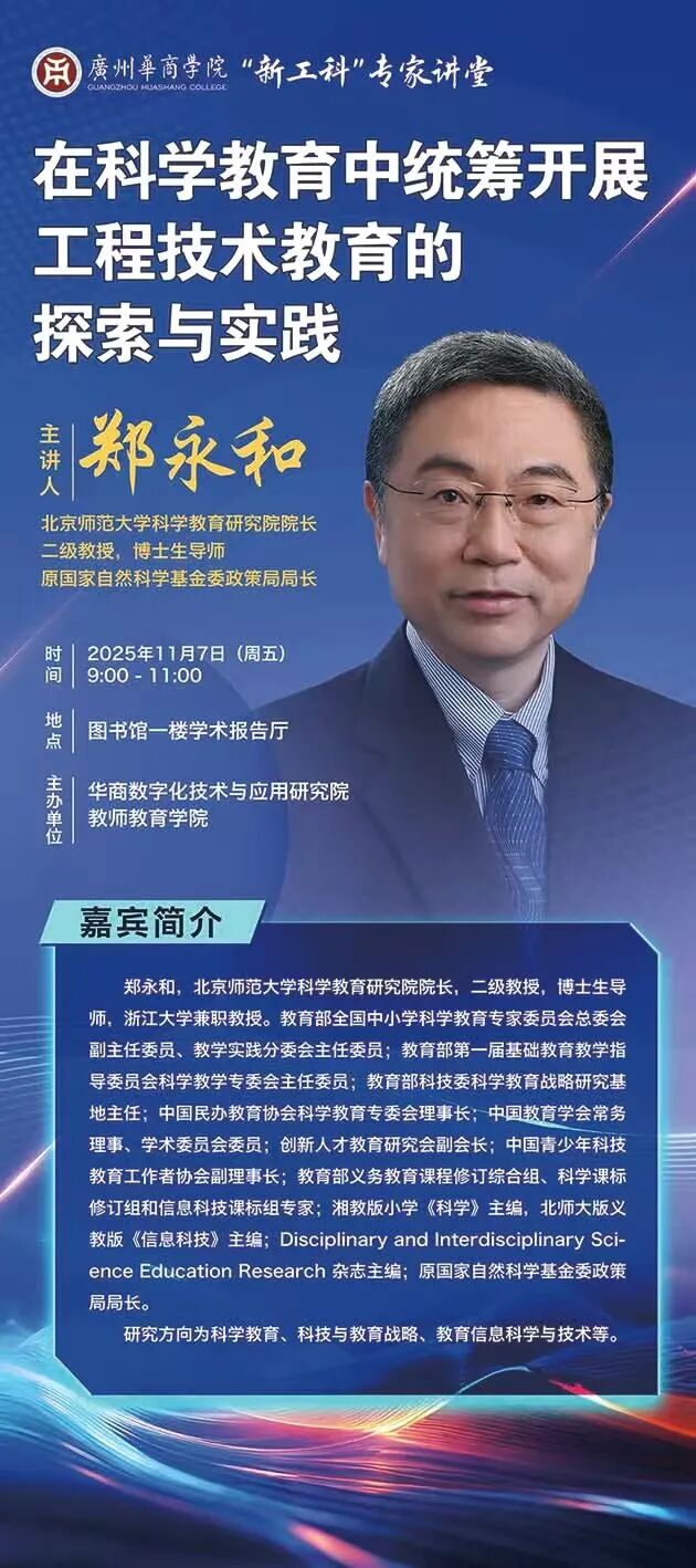 郑永和,北京师范大学科学教育研究院院长,二级教授,博士生导师,浙江大学兼职教授。教育部全国中小学科学教育专家委员会总委会副主任委员、教学实践分委会主任委员;教育部第一届基础教育教学指导委员会科学教学专委会主任委员;教育部科技委科学教育战略研究基地主任;中国民办教育协会科学教育专委会理事长;中国教育学会常务理事、学术委员会委员;创新人才教育研究会副会长;中国青少年科技教育工作者协会副理事长;教育部义务教育课程修订综合组、科学课标修订组和信息科技课标组专家;湘教版小学《科学》主编,北师大版义教版《信息科技》主编;Disciplinary and Interdisciplinary Science Education Research 杂志主编;原国家自然科学基金委政策局局长。研究方向为科学教育、科技与教育战略、教育信息科学与技术等。